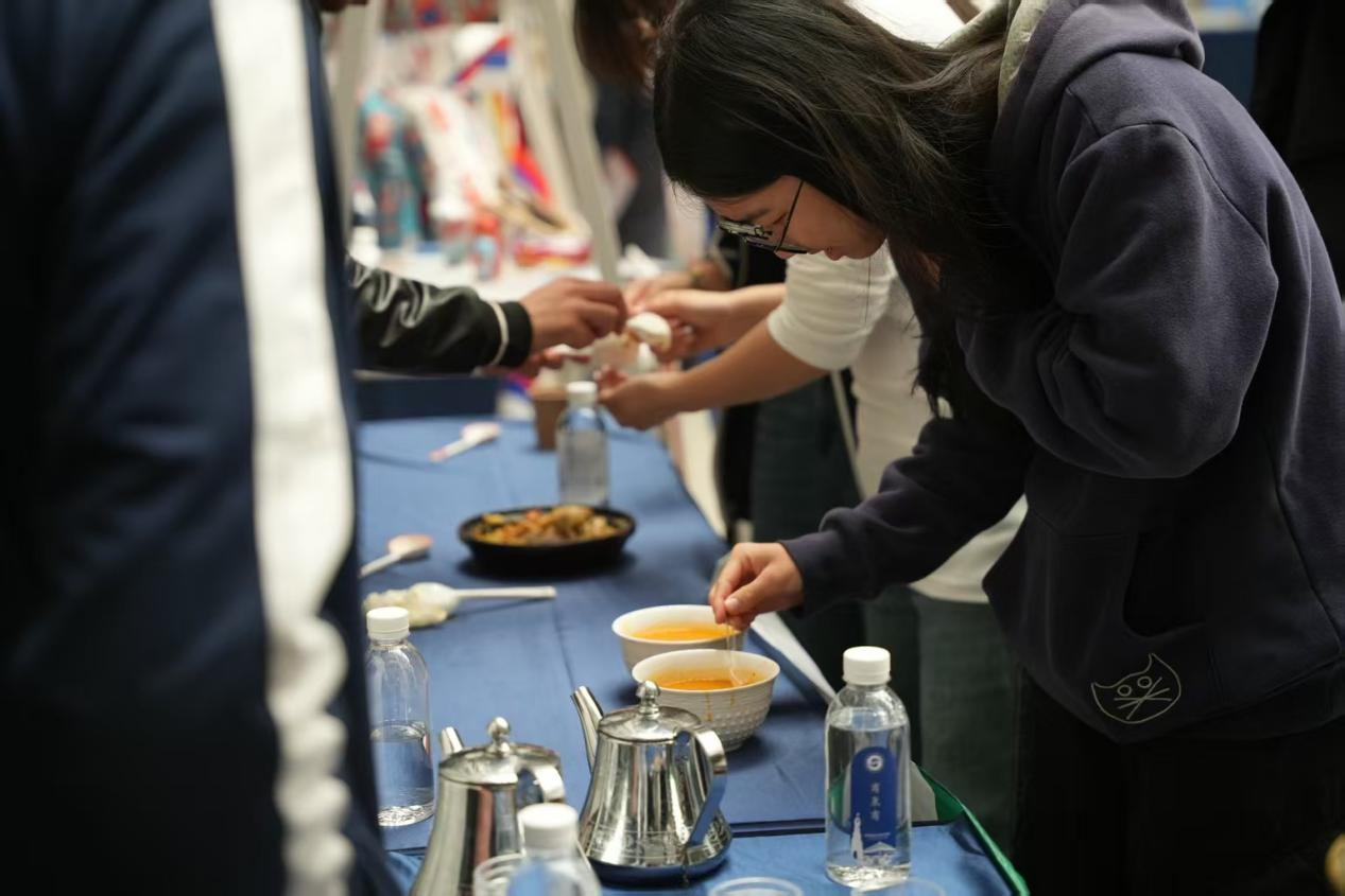 丰富多彩的各国文化在会场内荟萃一堂:中国非遗摊位展示了结艺、剪纸等传统技艺;美国文化摊位的NBA文化与街头涂鸦互动热烈;东南亚、蒙古、阿尔及利亚等摊位由国际学生主导,通过特色美食、民族服饰、传统工艺等,全方位展示了丰富多彩的地域文化。这些活动不仅极大增强了活动的趣味性与吸引力,更深化了不同文明间的理解与尊重,有效营造了开放包容、兼收并蓄的校园国际化氛围。