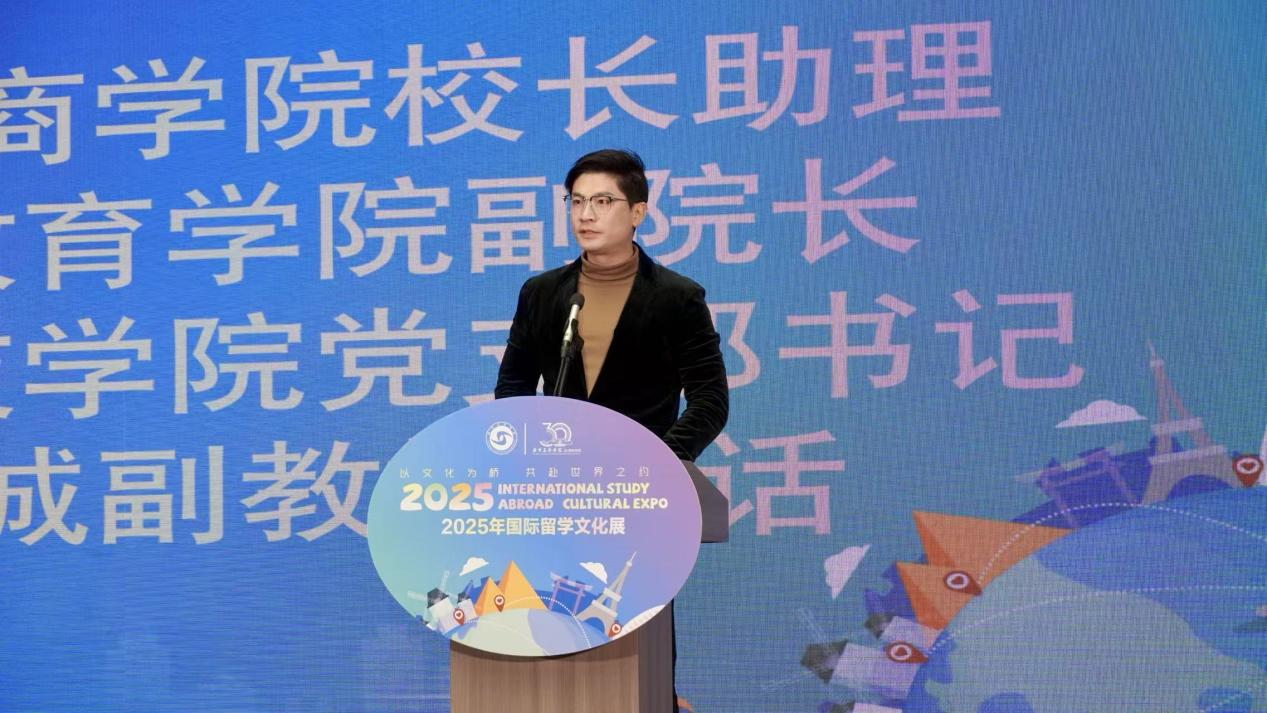 展会于当日上午9:30在一场融贯中西的文艺表演中拉开帷幕,学生们通过优雅的歌声与旋律,创意性地融合了不同文化的艺术元素,采各家之长,生动诠释了文明互鉴的主题,迅速点燃了现场氛围。随后,广州工商学院校长助理、国际教育学院副院长、联合科技学院党支部书记黄喆诚副教授,国际教育学院一分院院长曹玲芝教授,联合科技学院常务副院长何涛教授等领导致辞。黄喆诚副教授在讲话中对全球化背景下培养具有国际视野与家国情怀时代新人的重要意义进行了深刻阐述,重申了学院“从中国走向世界,把世界带回中国”的育人路径,并表达了学校对同学们走向世界的全力支持。