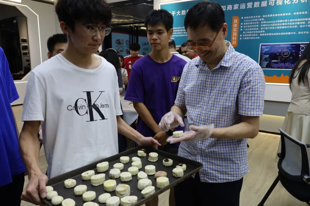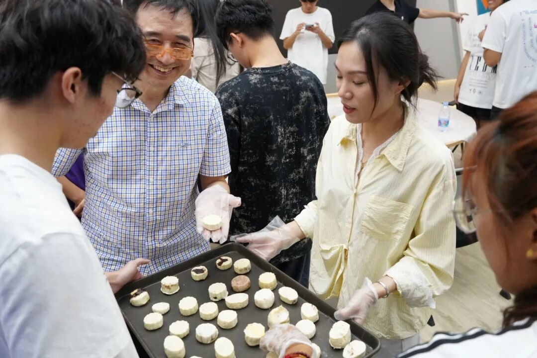 师生分组围坐,从揉制面团、调配馅料到塑形脱模,全程亲自动手制作专属月饼。指尖的揉捻是对传统技艺的传承,出炉的香甜是对团圆佳节的期许,大家在劳作中体会民俗之美,在分享中传递节日温情。一个个造型别致、口味多样的月饼,既是劳动的成果,更是双节同庆的甜蜜注脚。