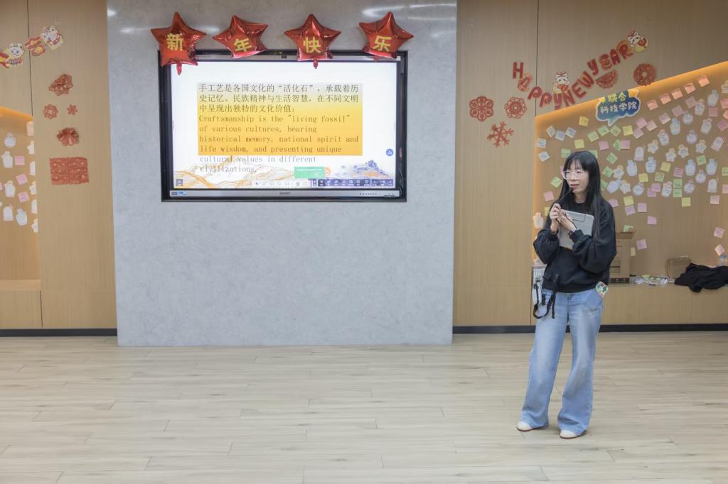 活动伊始,主持人以流利的英语欢迎到场师生,引出本次主题——“手工趣谈:边做边学英语”。