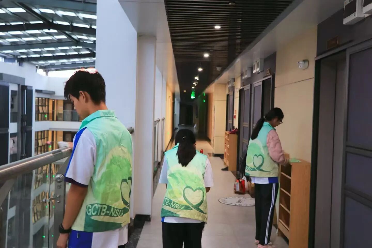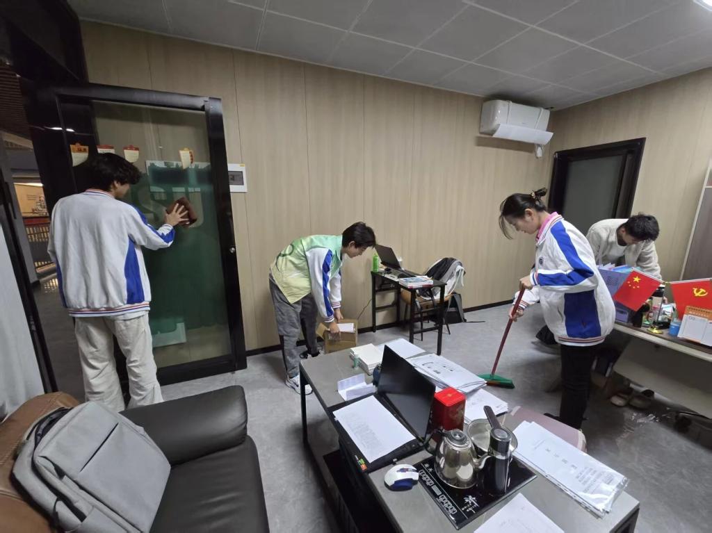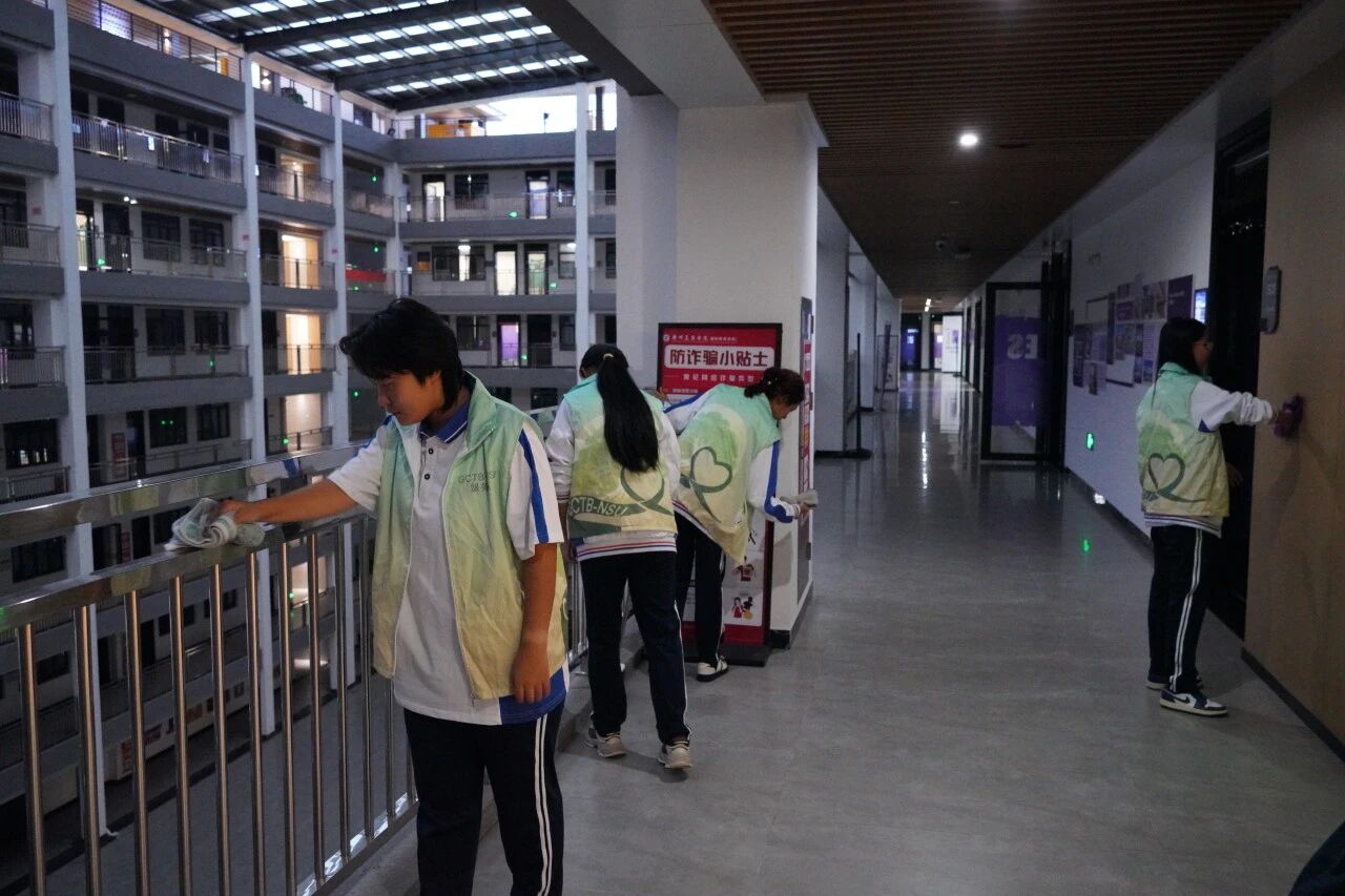 活动伊始,志愿者们严格遵循要求,统一身着校服,提前10分钟抵达第三综合楼610办公室签到集合。在工作人员的耐心引导与答疑后,大家有序领取劳动工具,迅速分组投入到三大重点区域的清洁工作中: